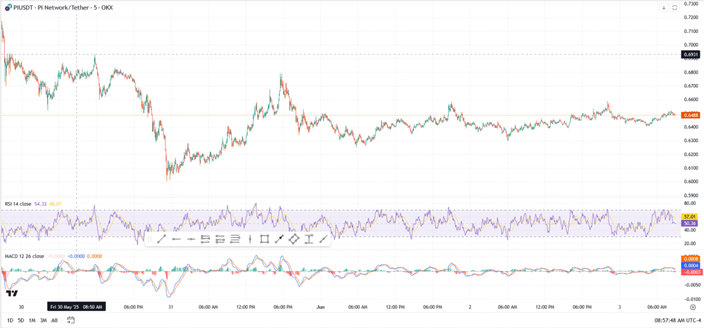 If Pi clears $0.66, there’s a clean run toward $0.6931, the May 29 high. But failure to hold $0.62 would undo recent structure and expose the $0.59 support zone again.
