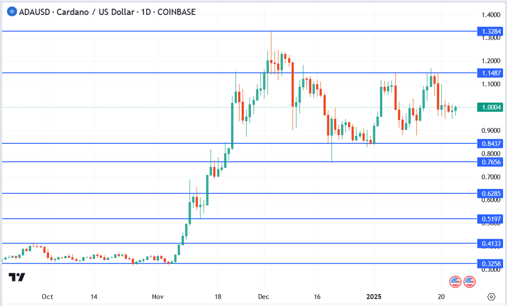Cardano, currently trading at $1.00, has been holding steady amid a relatively quiet market. Trump’s renewed leadership could indirectly benefit Cardano (ADA), as his policies often emphasize innovation and technological breakthroughs—areas where Cardano excels.