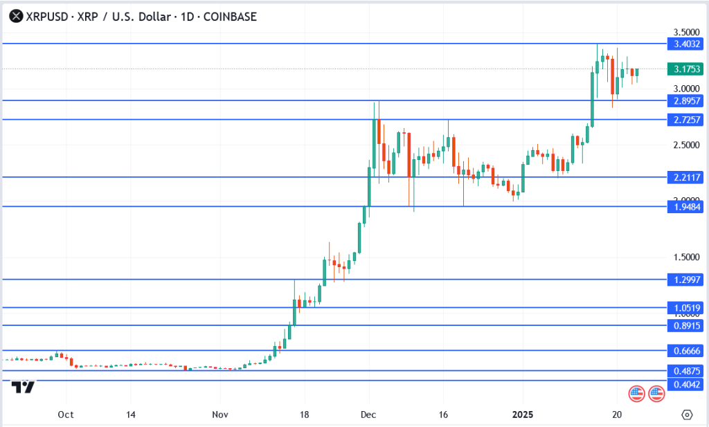 XRP has been a star performer, trading at $3.17 as it consolidates after a strong rally. Trump’s return has reignited discussions about global trade and financial systems, which play directly into Ripple’s mission of revolutionizing cross-border payments.