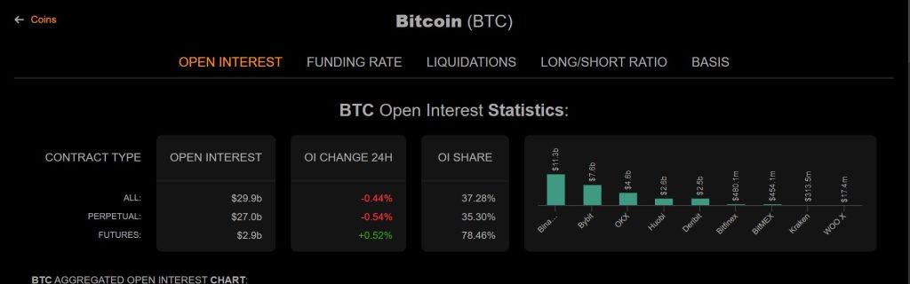 Meanwhile, Coinanalyze reports that the value of BTC open interest declined by 0.54 percent in the last 24 hours. That signals that investors are losing confidence in the coin’s near-term performance. However, the perpetual future rose by 0.52 percent in the same timeframe, which signals a favourable upside potential for BTC price in the long term.