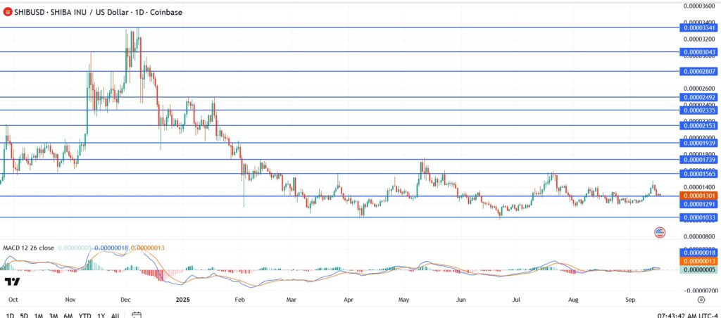 If this plays out, SHIB could drift toward the $0.00000595 area, roughly 55% lower than where it’s trading now.