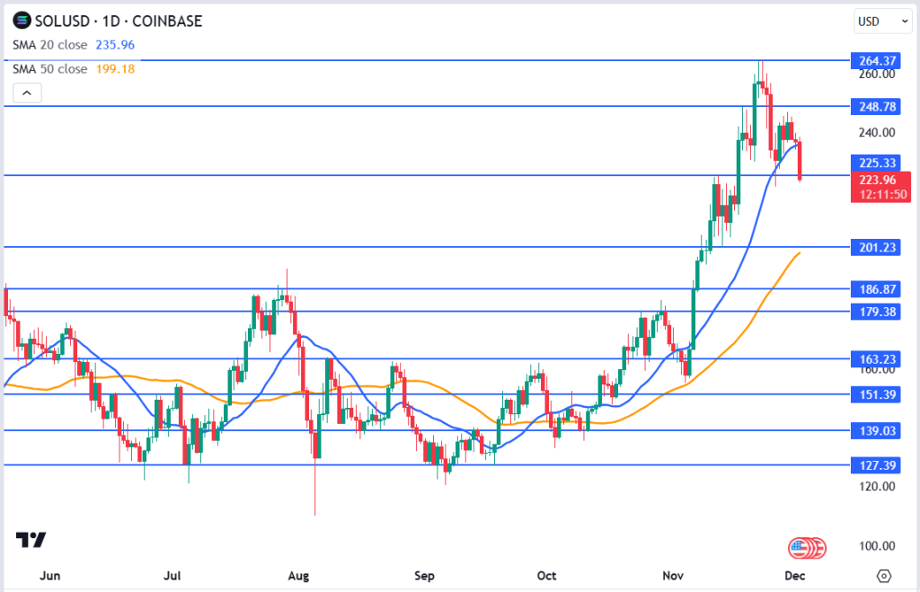 Solana (SOL) has experienced impressive growth over the past few months, but recent price action suggests the momentum may be slowing as the coin faces strong resistance near $250. Here’s an in-depth look at SOL’s technical levels and market drivers.