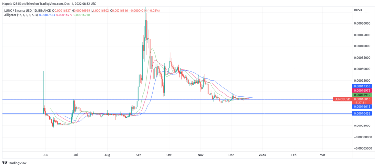 Luna Classic continues to trade within a narrow price range of between $0.00014 and $0.0018 in today’s trading session, extending a horizontal trend that has lasted for more than a month. Today’s less than a percentage point drop also highlights the lack of volatility in the markets, an indication that we might continue to see the horizontal trend for the next few trading sessions.