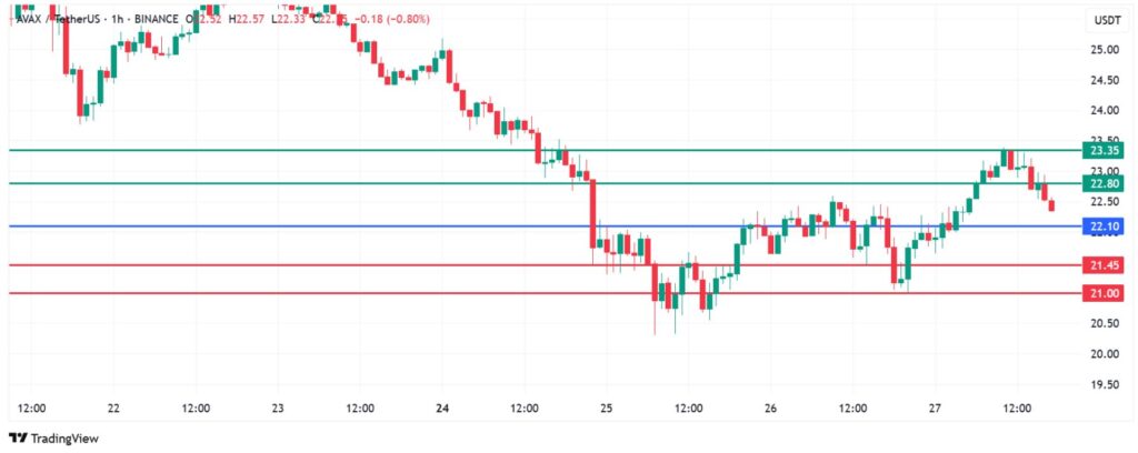 Resistance: Primary resistance at $22.80, second resistance at $23.35.