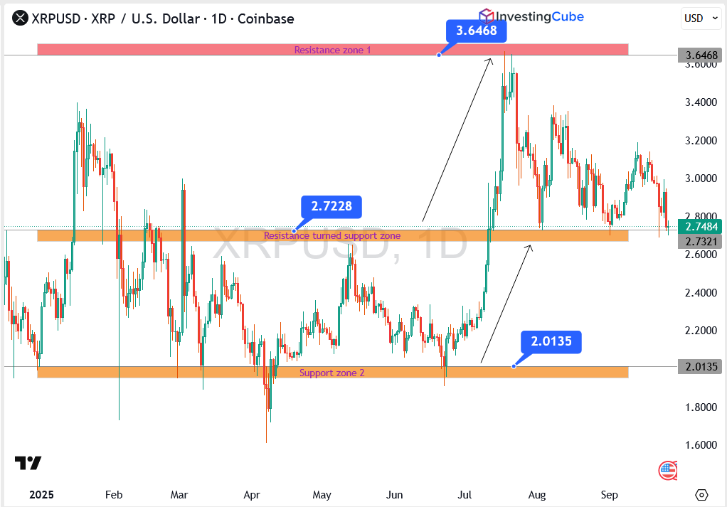 - Resistance: $3.6468 – a breakout here would signal bullish recovery.