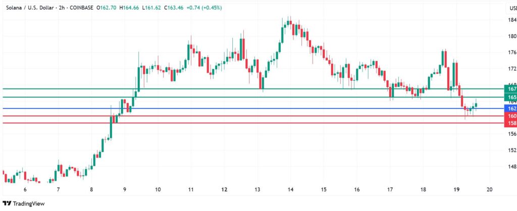 Pivot: Solana price pivots at $162 and the upside will prevail if action stays above that level. Otherwise, the momentum could shift to the downside.