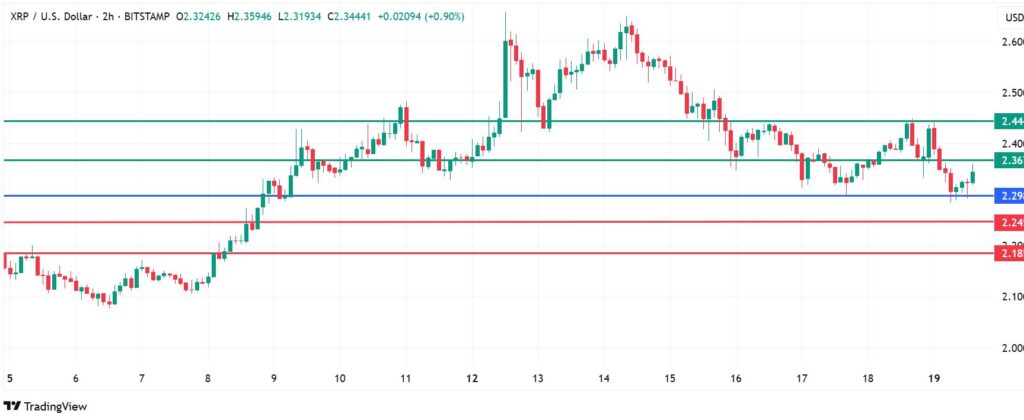 Pivot: XRP price pivot mark is at $2.44. The upside will prevail if action stays above that level. Conversely, breaking that level will shift the momentum to the downside.