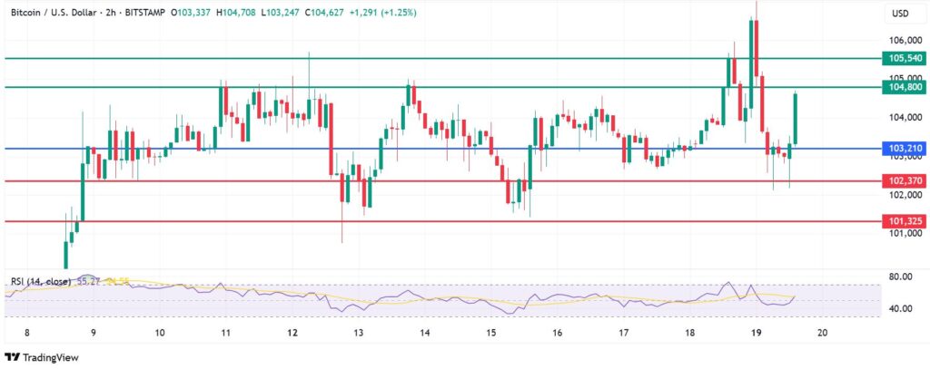 Resistance: Initial resistance will likely be at $104,800. Breaking above that level could clear the path to test $104,800.