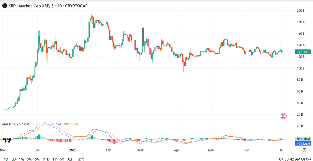 XRP is holding steady near $0.546 on Tuesday after a brief dip below $0.54 in early trading. Despite recent sluggishness, the token has refused to roll over, a sign that buyers are still defending the mid-June range. The broader mood across altcoins has cooled, but XRP’s structure remains intact.