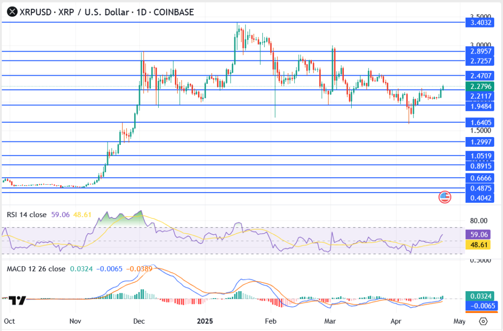 RSI sits at 59.06, and MACD remains positive, suggesting a possible push towards $2.72 if volume builds. Above that,$ 2.89 caps the next major upside move.