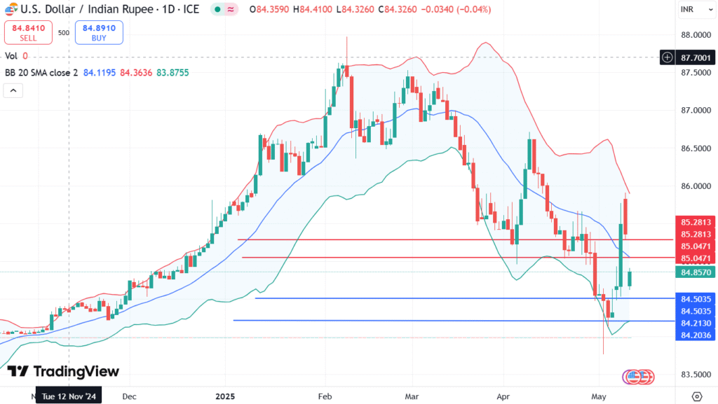 The rupee is waiting for the release of the consumer price index data later today, and this may affect the volatility somehow because traders use it to expect to which extent may affect the indian monetary policy. The next meeting for the monetary policy committee is scheduled to be from 4th to 6th June,2025.