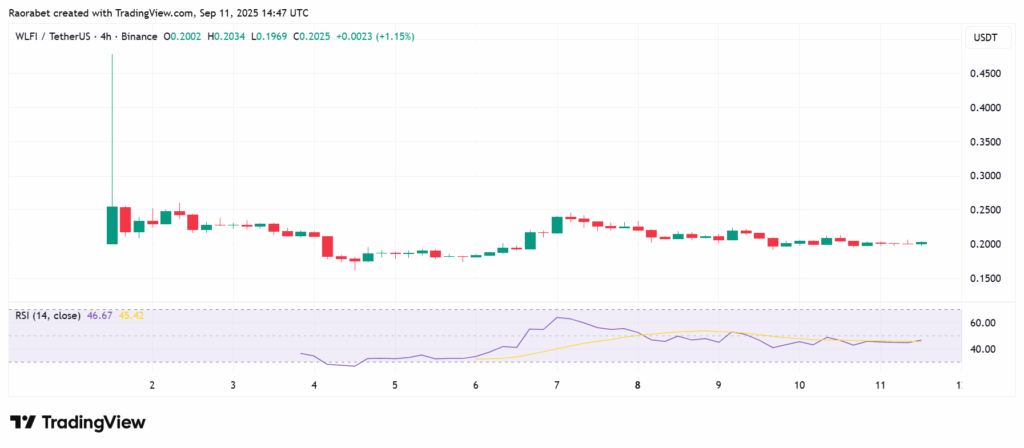 A 4-hour chart showing how WLFI started off with a bang but has recently lost momentum and is struggling to build upside traction. Source: TradingView