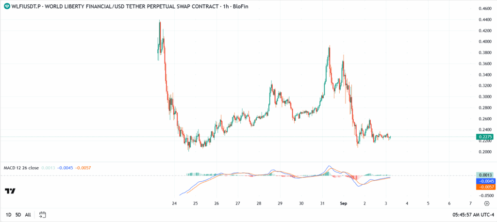 The token’s first release resembled a traditional hype cycle. When early investors pulled out, WLFI swiftly reversed its initial good start, rising above $0.30. On the first day, World Liberty permitted insiders to sell up to 20% of their holdings, flooding the market with supply. A dramatic reversal that wiped billions of dollars in paper wealth associated with the Trump family occurred by late trade, when WLFI was falling toward $0.22.