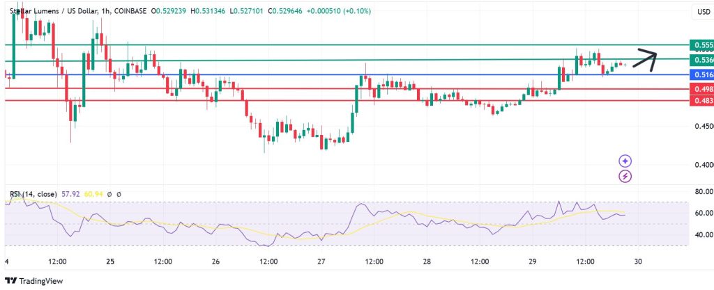 Pivot: XLM price pivot mark is at $0.516. Action above this level signals bullishness. Conversely, a break below it shows bearishness.