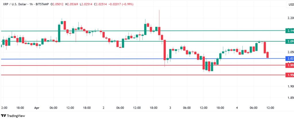 Pivot: XRP price pivots at $2.02 and the momentum favours the upside to prevail. The coin will likely meet initial resistance at $2.09. Breaking above that level will signal a strong momentum that could potentially take the action further up to test $2.14.