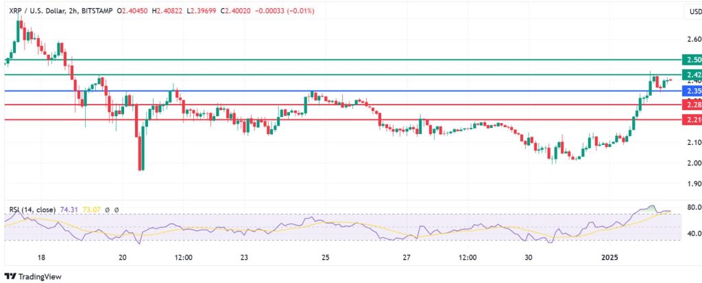 Resistance: With the buyers in control, immediate resistance for XRP will be at $2.42. However, a stronger momentum could breach that barrier and test $2.50.