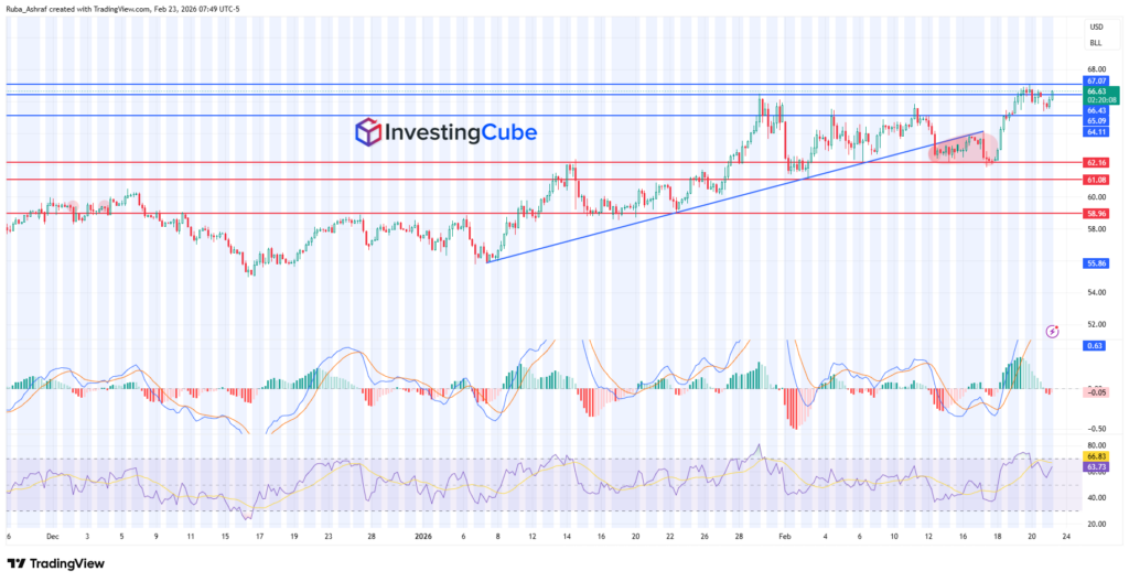 - Crude oil prices remain supported in the short term after breaking above key resistance near 66.43, confirming a bullish technical structure with strengthening momentum indicators.