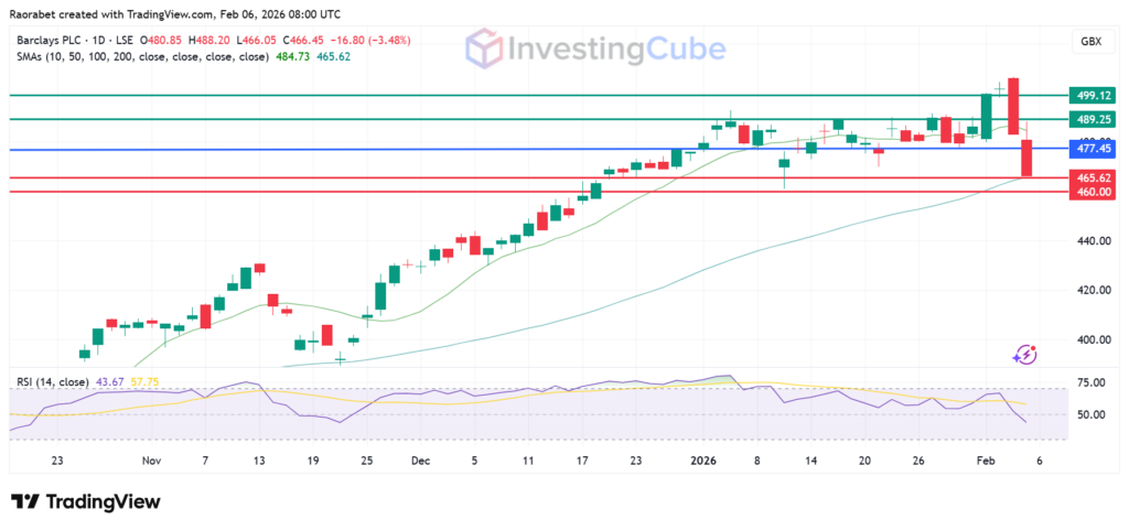 Barclays share price is struggling for upside momentum. It currently pivots at 477.45p and has its primary support at the 50-day SMA at 465.62p. If it goes below that, the stock could fall to the 440p support zone. On the upside, the key immediate resistance it faces is at 489.25p. Traders will want to see it close above this level to signal a move back to near the psychological 500p.