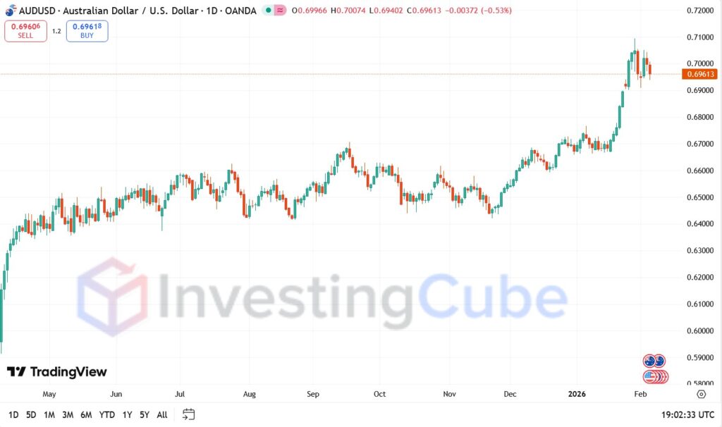 - Immediate Support: The 0.6908 level (the February 2 low) is the current fortress for the bulls. A daily close below this would invalidate the ascending channel that has governed the pair since late 2025.
