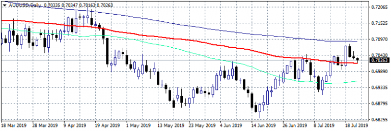 AUDUSD currently consolidates after a failed break above 0.7080. Fundamental data do not support a move higher as the Aussie data recently disappoints. On the downside first support now stands at 0.7016 the 100 day moving average, a level that if breached will signal the closing of long positions that started to follow the recent uptrend and some traders may enter short positions targeting the 0.6953 mark where the 50 day moving average stands. A wait and see stance on the pair looks like the best strategy for now. On the upside immediate resistance stands at 0.7056 the high from yesterday while more offers will emerge at 0.7089 the 200 day moving average.Don’t miss a beat! Follow us on Twitter.