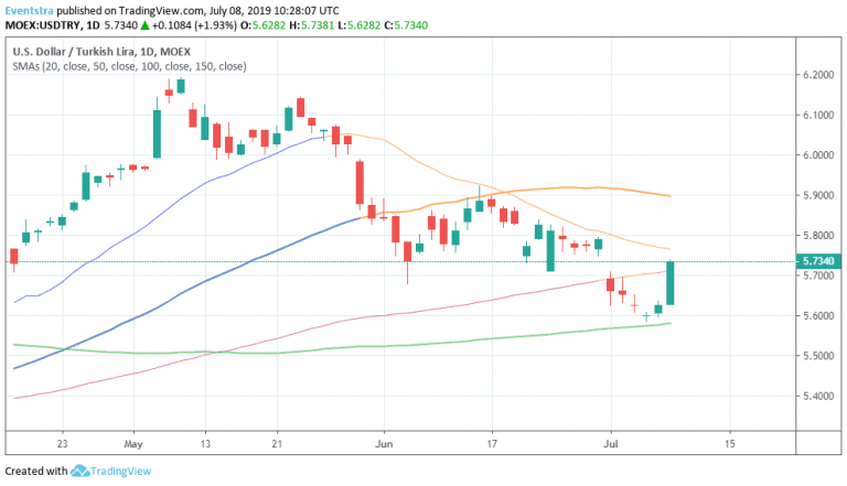 Turkish lira (USDTRY) gives up over 1.9 percent against the greenback after President Erdogan fired Murat Cetinkaya. Governor Cetinkaya, whose term was due to 2020, was replaced by deputy Murat Uysal, who was the deputy governor for three years and is one of the more dovish members of Policy Committee. Economists’, now looking Turkey’s central bank to start easing interest rates policy at July 25 meeting.