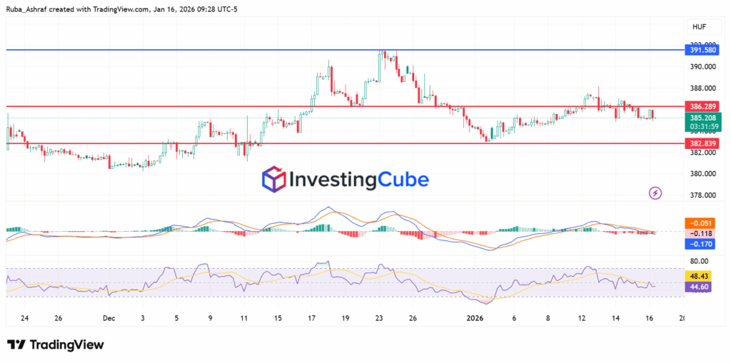 Currently, EUR/HUF is trading around 386.28, which represents an important near-term resistance. A sustained breakout and daily close above 386.28 would technically improve upside momentum and strengthen bullish sentiment in the pair. If this breakout is confirmed, EUR/HUF could eye the next key resistance near the 390 level, where sellers previously emerged.