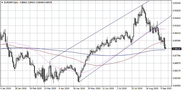 EURGBP trades flat at 0.8863, close to 3-month lows after PM Boris Johnson reiterated after the meeting with Junker that he would not request an extension. On the macro front, Italy Consumer Price Index (EU Norm) (year over year) matched forecasts of 0.5% in August.