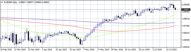 EURGBP is under selling pressure the last hours as investors concerns about hard Brexit ease after comments from Michel Barnier that EU is ready to work on alternative arrangements for Irish border issue. UK Parliament yesterday voted in favor of an amendment that prevents the Prime Minister to suspend the Parliament and allow the country to leave the European Union without a deal. Earlier today the German Producer Price Index (MoM) came in at -0.4% below expectations of -0.2% in June while the Producer Price Index (YoY) registered at 1.2%, below expectations of 1.4% in June. The macro data from EU continue to disappoint investors while this week we have stronger data from The UK. The scenario that ECB is looking to adjust inflation target also weigh on Euro.