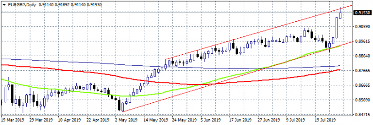 EURGBP gives up 10 pips at 0.9150 after the news while EURUSD trades flat at 1.1140. Traders await the key risk event for the week as the FOMC two-day policy meeting starts today, at which it is expected to cut interest rates by 25 basis points. Markets have already discounted a 25 basis points rate cut from Fed.