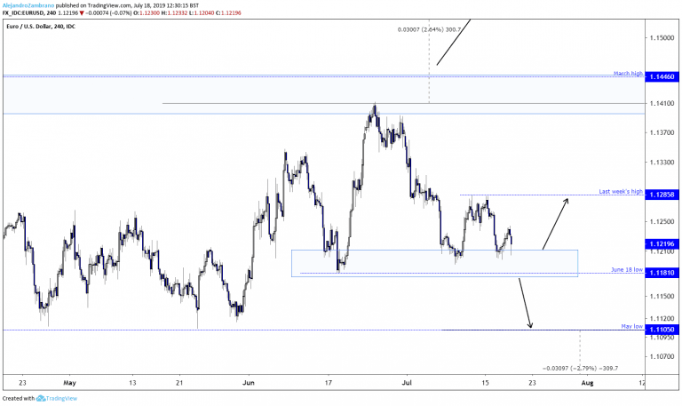 The nearest important support level is the 1.1181 level and as long as the price trades above this level the price might drift towards last week’s high of 1.1285, while a break to the 1.1181 low might send the price to the next support level and likewise May low of 1.1105.Don’t miss a beat! Follow us on Twitter.