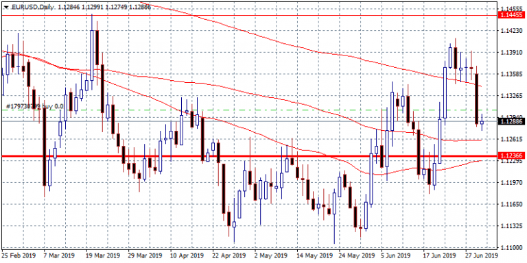 EURUSD trading slightly higher at 1.1296 after German Retail Sales shrunk, month over month, came in at -0.6 percent, worst than analyst’s forecasts of 0.5 percent in May, the year over year figure came in at 4%, beating forecasts of 2.7 percent in May. The France Budget came in at -83.9 billion, below market consensus of -70.2 billion for May. The Spain Unemployment Change reported at -63.8K, beating the forecasts of -90K in June. EU leaders yesterday failed to agree on the top positions in ECB, Commission, the European Council and the European Parliament.