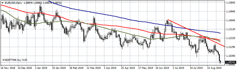 - EURUSD is trading 0.21% lower at 1.0964 heading south for sixth consecutive sessions in a row; the pair breached the YTD lows at 1.1026 on Friday that gave