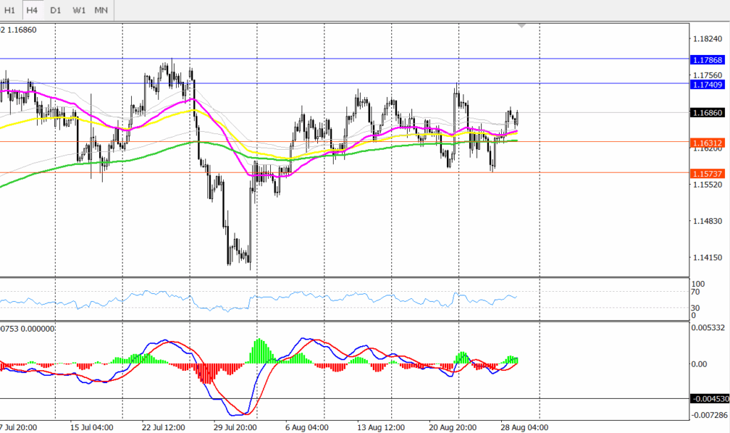 From the technical perspective, the EUR/USD currency pair is trading in a narrow range on the 4-hour time frame. Ranged between the key support level of $ 1.1505 and the key resistance level of $ 1.1740.