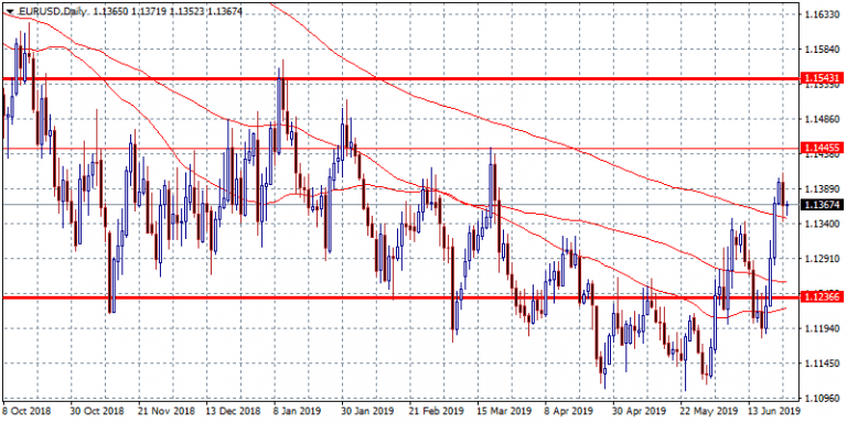 Euro is giving up 0.07 percent to 1.1359 as traders digest the comments from FED members yesterday that calm the markets after the interest rate cut hysteria that started the previous week. Fed’s chairman Jerome Powell reiterated FOMC view that the case for lower rates has gain momentum but noted that the interest rate policy should not overreact. Earlier today the pair hit the daily low 1.1352 and the daily high at 1.1371. Macro data from USA failed to impress USD investors as The New Home Sales Change (Month on Month) came in -7.8% lower at 0.626M below economist’s forecasts of 1.9% and 0.68M for May. The United States Richmond Fed Manufacturing Index came in at 3 below analyst’s forecasts of 5 for June. The consumer confidence weakened in June with the headlines Confidence Index dropping to 121.5 in June from 131.3 in May.