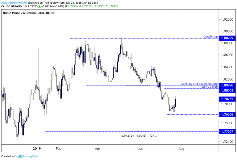 - GBPAUD was at one point up by 171 pips reaching a high of 1.7926. The rise comes after that Boris Johnson was confirmed to be the next UK PM.
