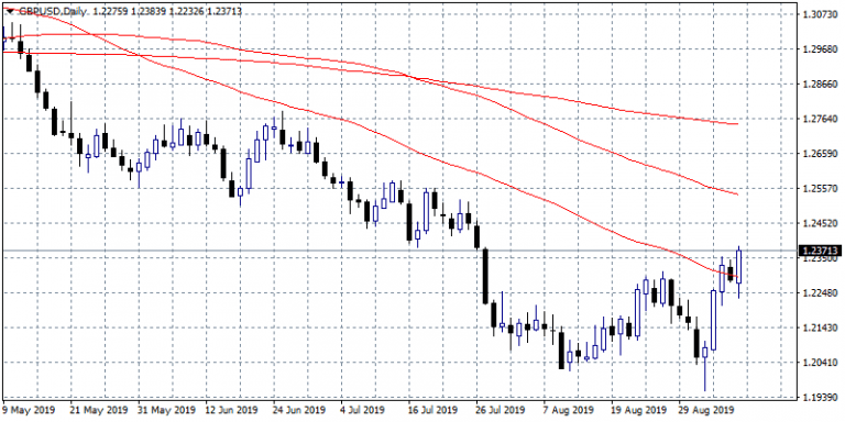 GBPUSD makes an impressive rebound from daily lows at 1.2232 adding as of writing 0.46% at 1.2346 after stronger GDP data. The United Kingdom Gross Domestic Product (month over month) came in at 0.3% beating forecasts of 0.1% in July. United Kingdom Manufacturing Production (year over year) came in at -0.6%, topping expectations of -1.1% in July. The UK Goods Trade Balance came in at £-9.14B, also beating forecasts of £-9.6B in July.