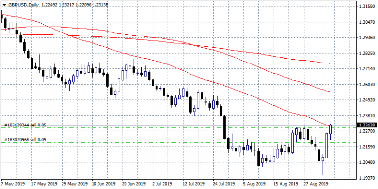 GBPUSD adds 0.41% at 1.2304 after the UK Parliament voted a bill to force Prime Minister Boris Johnson to request an extension if he is unable to agree a Brexit deal with the EU. UK is scheduled to leave EU on October 31.