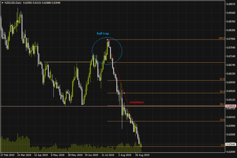The NZDUSD has exhibited the typical price cycle that is displayed on the charts when the institutional players suck retail traders into the so-called “bull trap”. The bias for NZDUSD continues to remain bearish, especially as markets continue to price in further rate cuts by the RBNZ before 2019 is over.