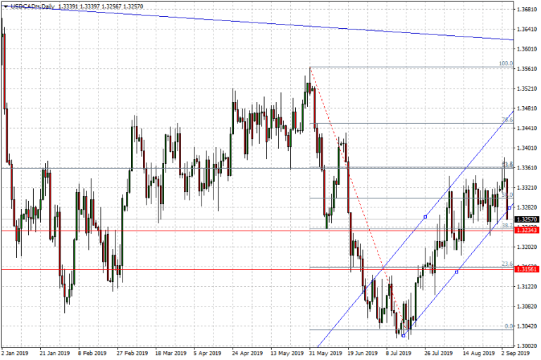 The daily chart shows that the downside price move of USDCAD is now testing the up channel on the daily chart. A 3% penetration close below the channel’s lower border could lead to further downside with 1.3234 (50% retracement level from the May 31 high to July 19 low) and 1.3156 being potential near-term price targets for swing trades.