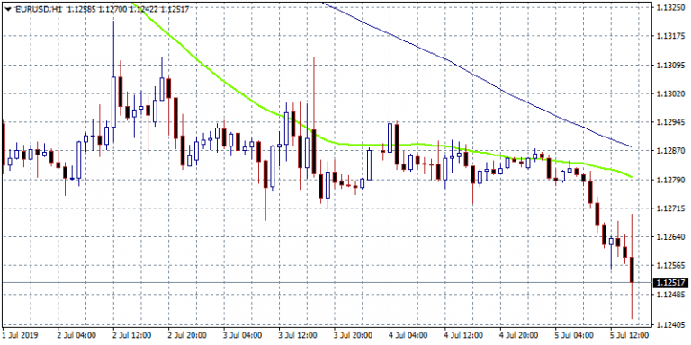 EURUSD reacted with a sharp drop to 1.1243, USDJPY hitting thew daily high at 108.45, while the Pound gives up 0.45 percent approaching the June low at 1.2507