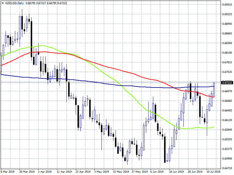 Kiwi got a boost from better Chinese figures earlier today, the China Industrial Production (year over year) came in at 6.3% above forecasts of 5.2% in June. The China Gross Domestic Product (year over year) matched expectations of 6.2% for 2Q 2019. China Gross Domestic Product (quarter over quarter) came in at 1.6%, better than forecasts of 1.5% in 2Q. The China Retail Sales (year over year) came in at 9.8%, beating expectations of 8.3% in June. The New Zealand Visitor Arrivals (year over year) came in at -1.2% below expectations of 3% in May.
