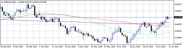 NZDUSD consolidates at recent high holding above the critical 200 day moving average, and today started the trading session 0.19 percent higher as more longs are convinced that new leg higher has started. The New Zealand Consumer Price Index (quarter over quarter) last week matched forecasts of 0.6% in second quarter 2019 the previous reading was 0.1%. The Consumer Price Index (year over year) also came in line with forecasts of 1.7% in second quarter 2019, from 1.5%.
