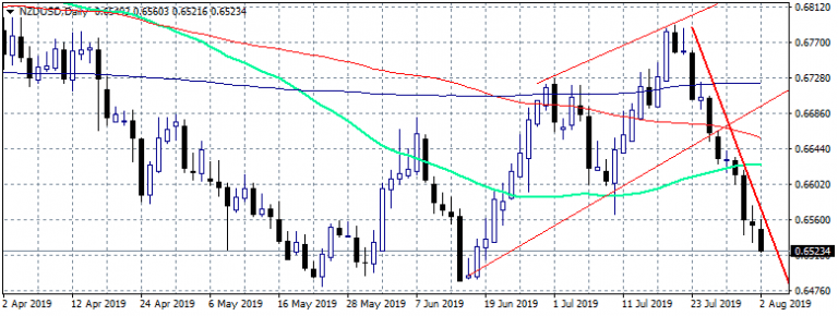 NZDUSD gives up 0.44 percent at 0.6523 at fresh three week lows amid USD strength across the board. New Zealand’s ANZ-Roy Morgan Consumer Confidence lost 6 points in July to 116, keeping the index below the historical average. Earlier this week the New Zealand ANZ Business Confidence came in at -44.3 below expectations of-34.9 in July. A report that the RBNZ is starting to explore more unconventional policy pushed also the kiwi lower.