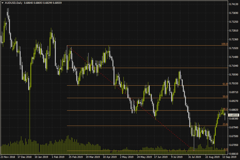The previous figure was +41.1K for the employment change. This gives a deviation of 25.9K. If the employment change is negative, a further selloff on the AUDUSD would be on the cards. Sentiment is already negative and the AUDUSD is down 40 pips on the day. The nearest support currently lies at the 23.6% Fibonacci retracement. Below this level, support can also be found at 0.67462.
