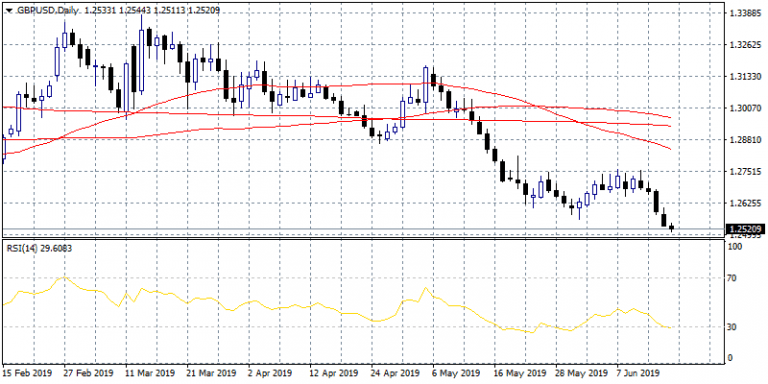 - GBPUSD trades at 1.2517 just six pips above the daily low at 1.2511 before the second round of voting for the Tory leadership later today.