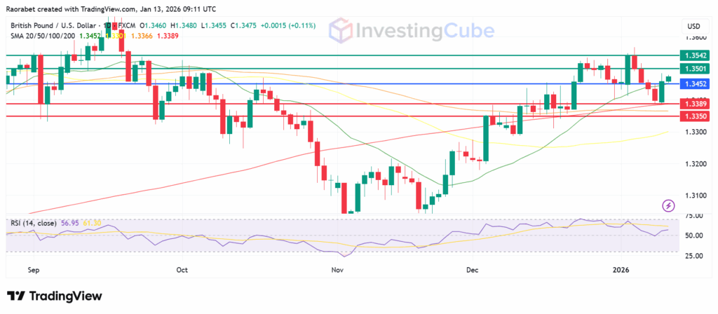 GBP/USD daily chart on January 13, 2026 with key support and resistance levels. Created on TradingView