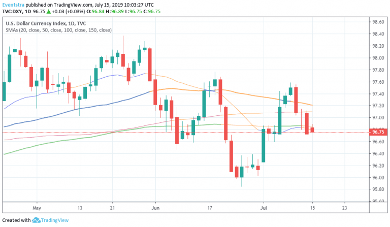The US dollar currency index looks unfazed by the news and trades 0.05 higher at 96.77. DXY short term momentum is bearish as it holds below all the hourly moving averages. Bears are in control below the 70 mark. On the downside immediate support stands at 96.25 the low from July 1st while more bids will emerge at 95.87 low. On the upside resistance stands at 97.10 the 100 day moving average, and then at 97.21 the 50 day moving average. USD is under pressure as we approach the Fed’s next policy meeting in the end of July, and investors are expecting a 25 basis point cut. EURUSD is trading close to daily high at 1.1280, while the USDJPY gives up 0.41 percent at 107.84.Don’t miss a beat! Follow us on Twitter.