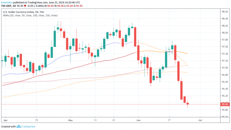 After the news the dollar index (DXY) drops below 96 at 95.96, while the EURUSD rebounds from the daily low at 1.1376 up to 1.1396. It looks that the worst than expected news can drive euro above 1.14 as the figures support an immediate interest rate cut by the FED in July.