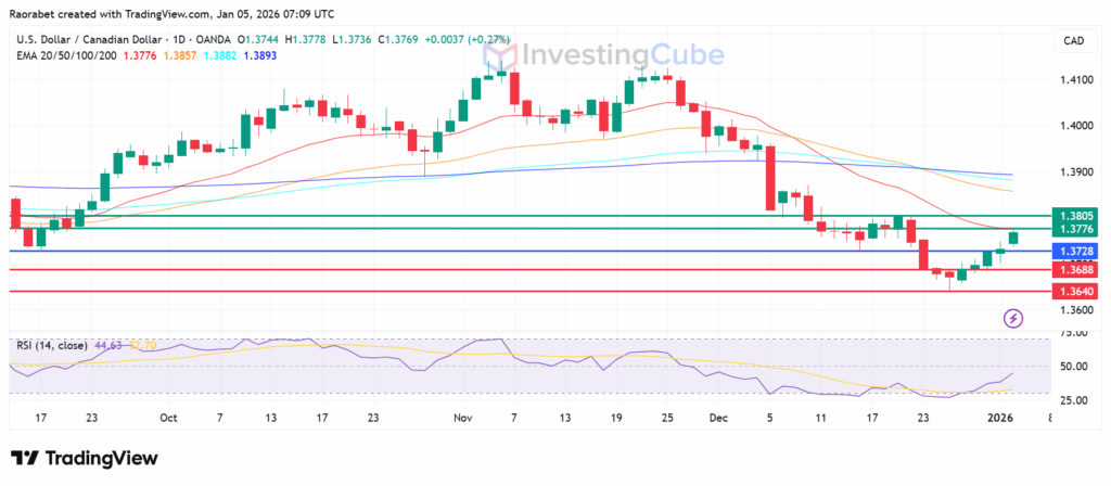 USD/CAD has been on a bit of a hot streak lately. After dropping from around 1.40 in late November 2025 to about 1.367 by Christmas, it’s bounced back a bit with four straight up days into early January 2026, trading at 1.3771 right now. While this rise is good news for dollar fans, whether it lasts is still up in the air.
