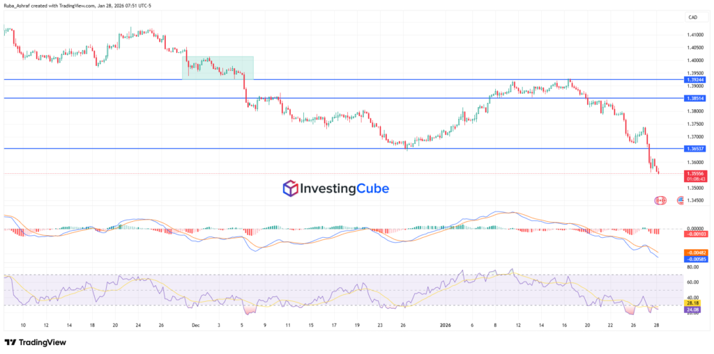- USD/CAD remains sensitive to today’s Bank of Canada and Federal Reserve decisions, with policy signals likely to drive near-term volatility.